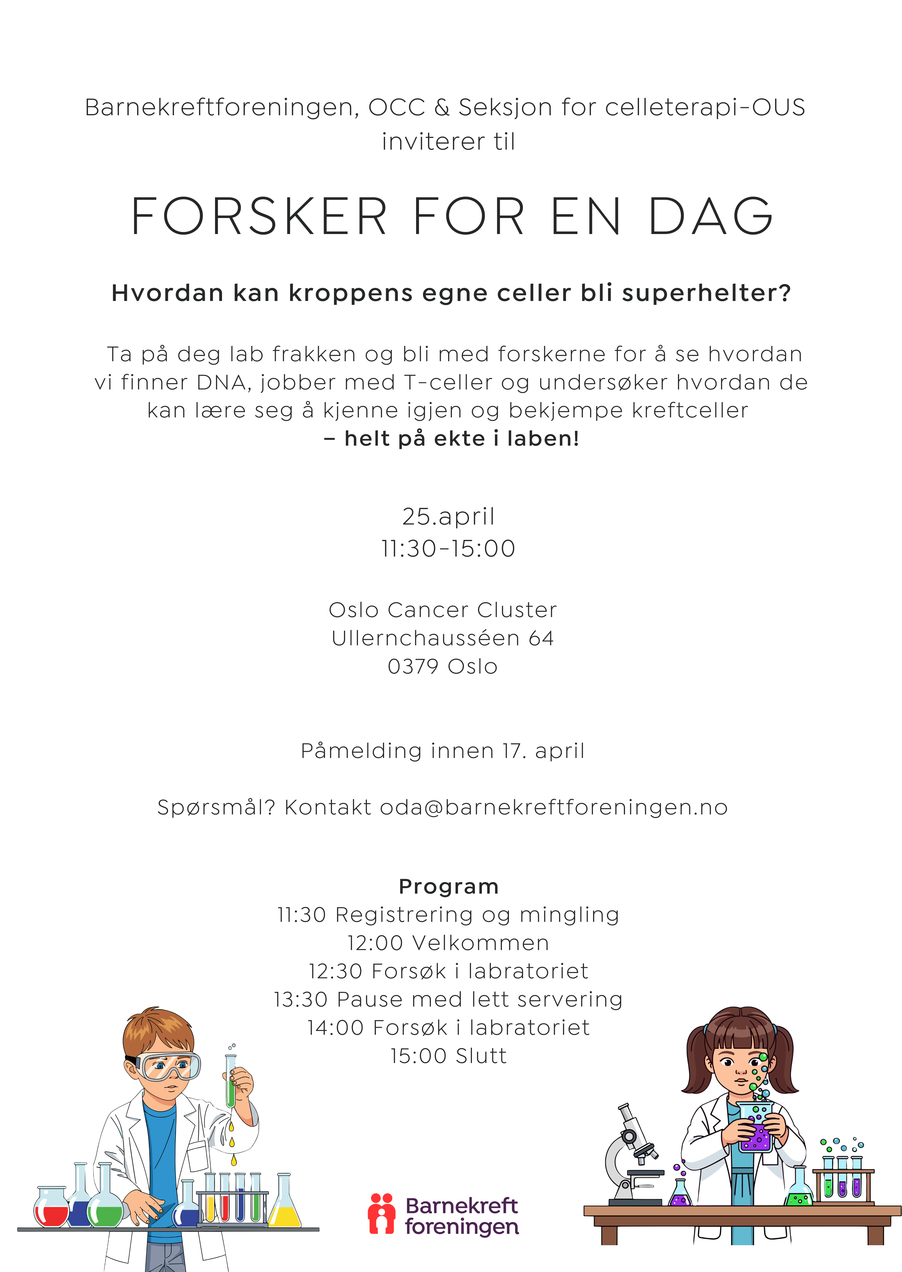 Ta på deg labfrakken og bli med forskerne for å se hvordan vi finner DNA, jobber med T-celler og undersøker hvordan de kan lære seg å kjenne igjen og bekjempe kreftceller – helt på ekte i laben!