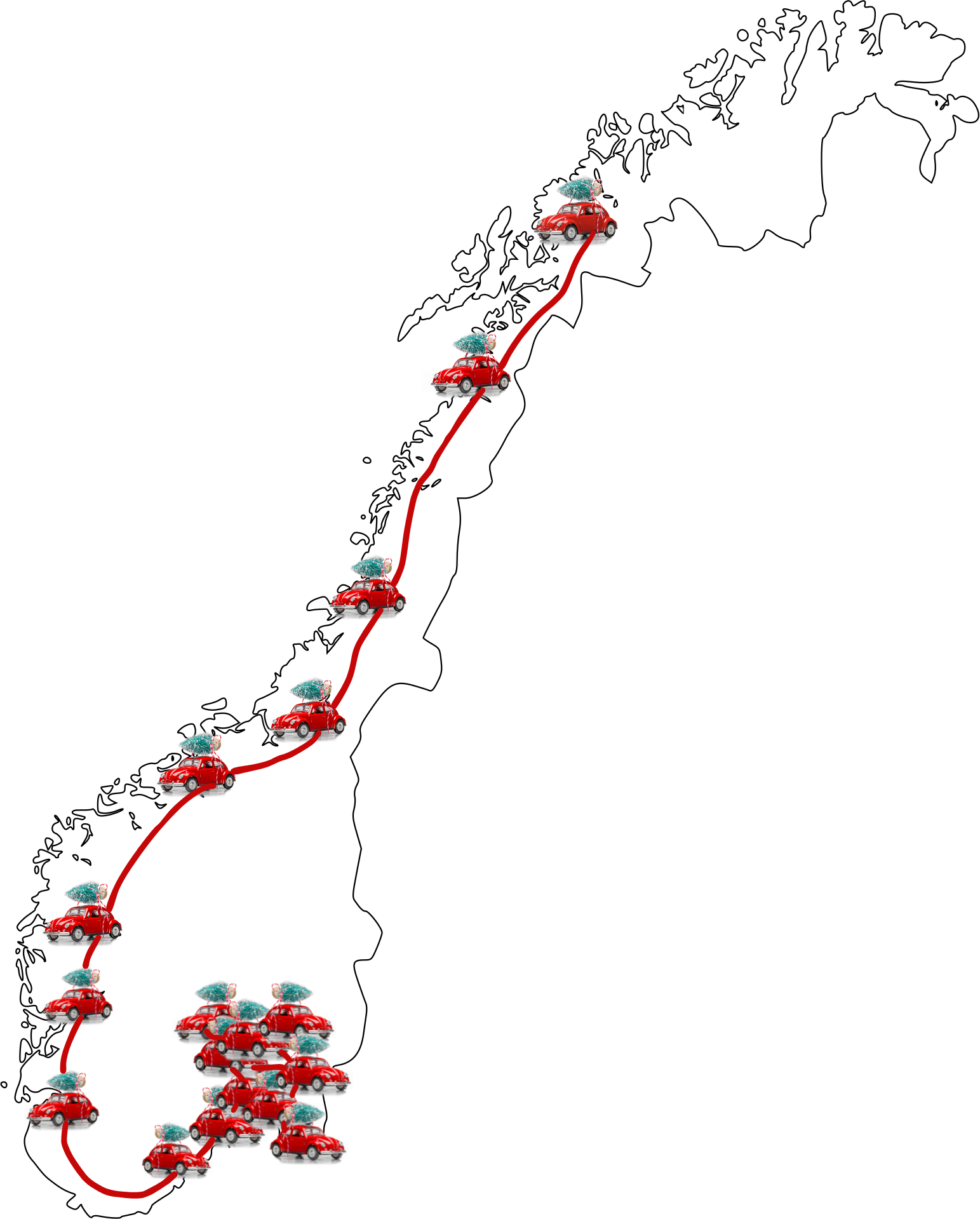 Fra 22. november til 22. desember legger Julebilen ut på en unik reise gjennom hele Norge – fra Tromsø i nord til Oslo i sør, i følge med Vår Jul-konsertturne.