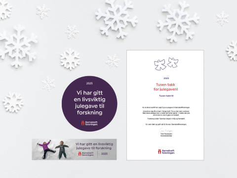 Nedenfor kan du laste ned det digitale julemateriellet. Bruk det i bedriftens kanaler for å fortelle at dere har gitt en livsviktig julegave til forskning på barnekreft. Slik viser dere bedriftens engasjement, og skaper stolthet og glede blant medarbeidere, kunder og samarbeidspartnere i tillegg.